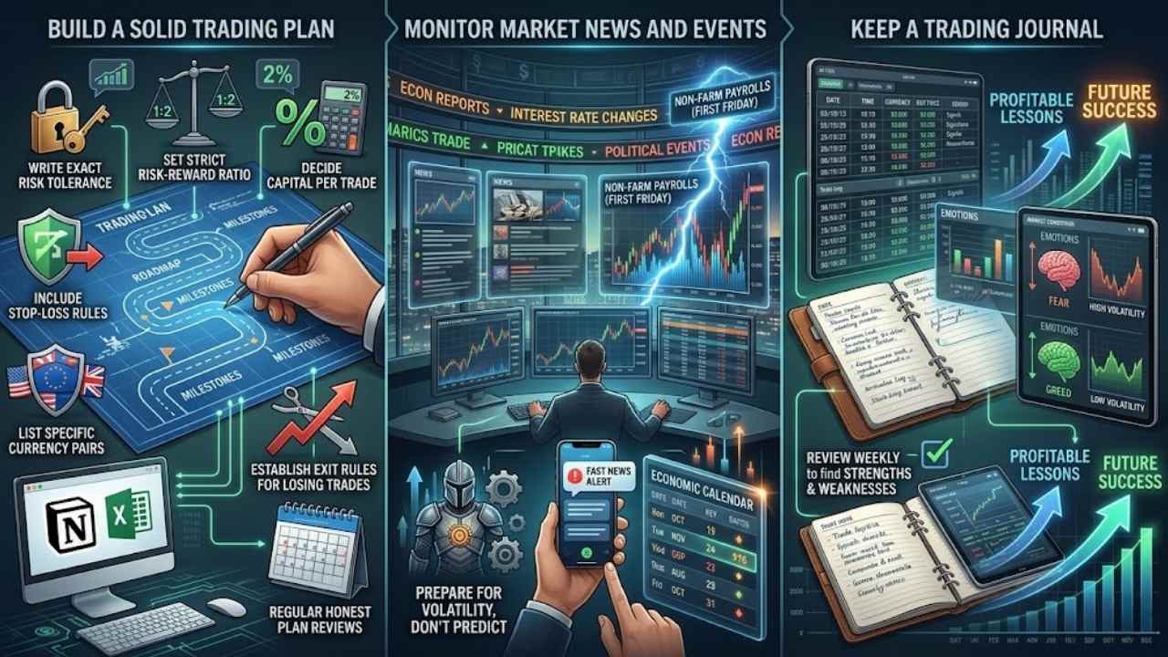 Keeping a trading diary helps you track what worked and what failed. Interest rates, economic releases, and market gaps can move prices instantly. Knowing your risk limits prevents you from getting wiped out.