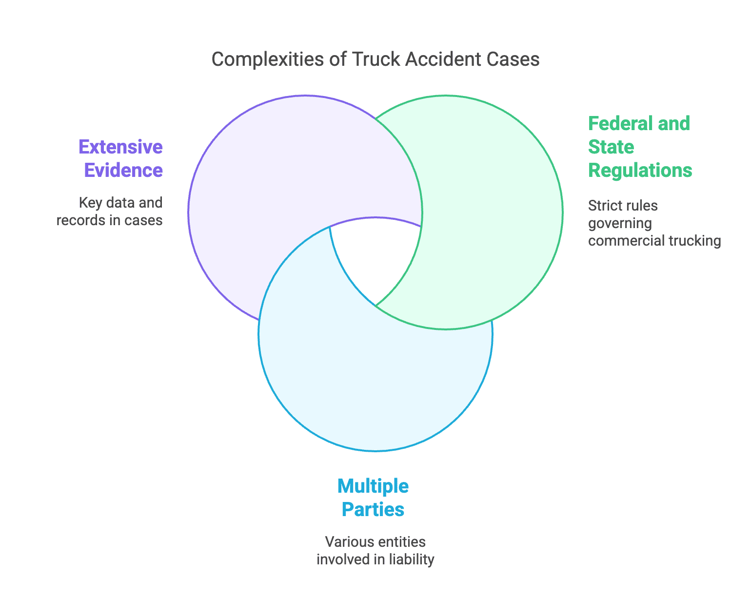 Truck accident cases are not the same as car accident cases. Even though they both involve motor vehicles, commercial trucks are much larger. These cases are also complex, involving intricate regulations, extensive evidence and multiple parties.