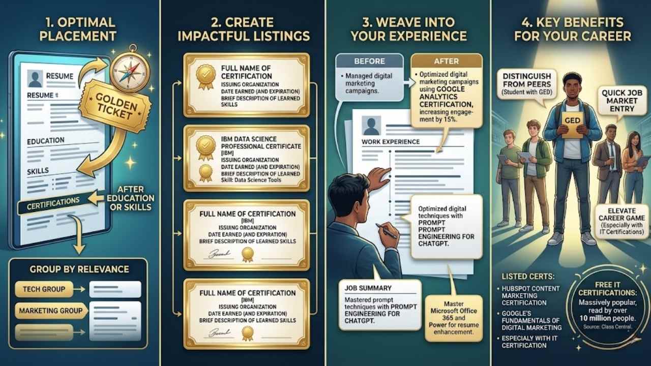 Picture your resume as a ticket to that dream job, and those free certifications as the golden stamps that make it pop. Add them right under your skills section, like badges of honor, to catch a recruiter’s eye in seconds, and watch doors open wide.