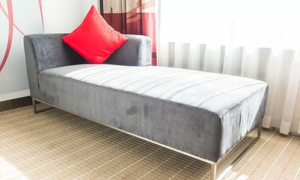 A love seat or armchair with thin arms can even fit snugly near a stairwell or nook!