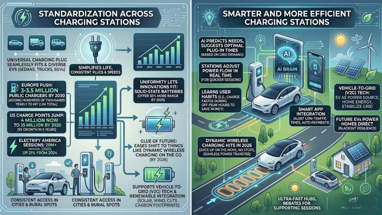 Electrify America saw over 20 million sessions in 2025, up 21% from 2024. This uniformity lets innovations like solid-state batteries, offering 50% more range by 2026, fit right in.
