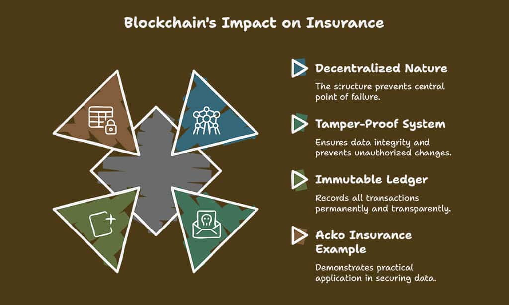 Blockchain enables insurers to store policy details and claims history in a tamper-proof system, ensuring that all information is secure and verifiable. This is particularly important for industries like insurance, where fraud and data breaches are common.
