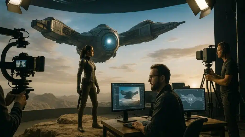 Virtual production is a major trend shaping the future of cinema. Instead of shooting on physical sets, filmmakers use LED walls that display high-resolution virtual environments. This allows actors to perform inside realistic digital worlds. Directors can adjust lighting, scenery, and weather instantly.