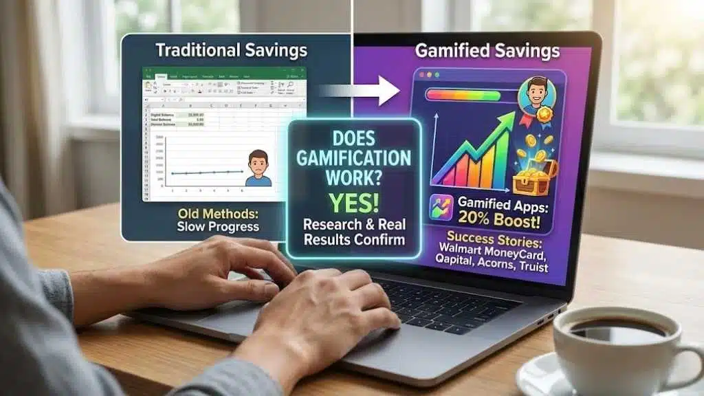 Gamification of savings means adding game-like features to saving money. This idea is simple, yet powerful. We use points, badges, and leaderboards to turn saving into a fun challenge. Many apps like Qapital, Acorns, Long Game, and SavingsQuest already use this approach. Research shows these tools work well; people save 20 percent more with them. In fact, using fun game methods can boost our saving habits by 22 percent.