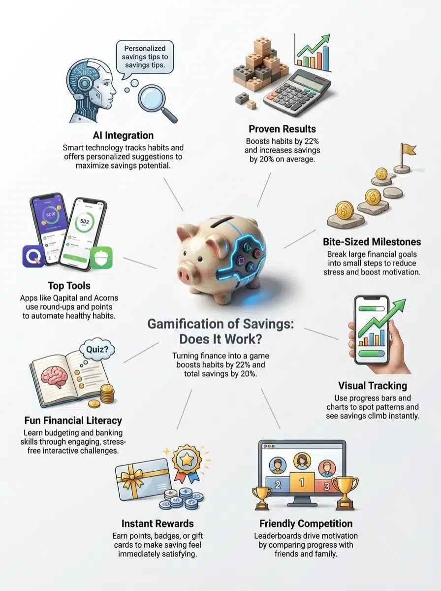 Gamification of savings takes ideas from games and blends them into personal finance. We see this in digital banking and savings apps that use points, badges, leaderboards, or rewards.