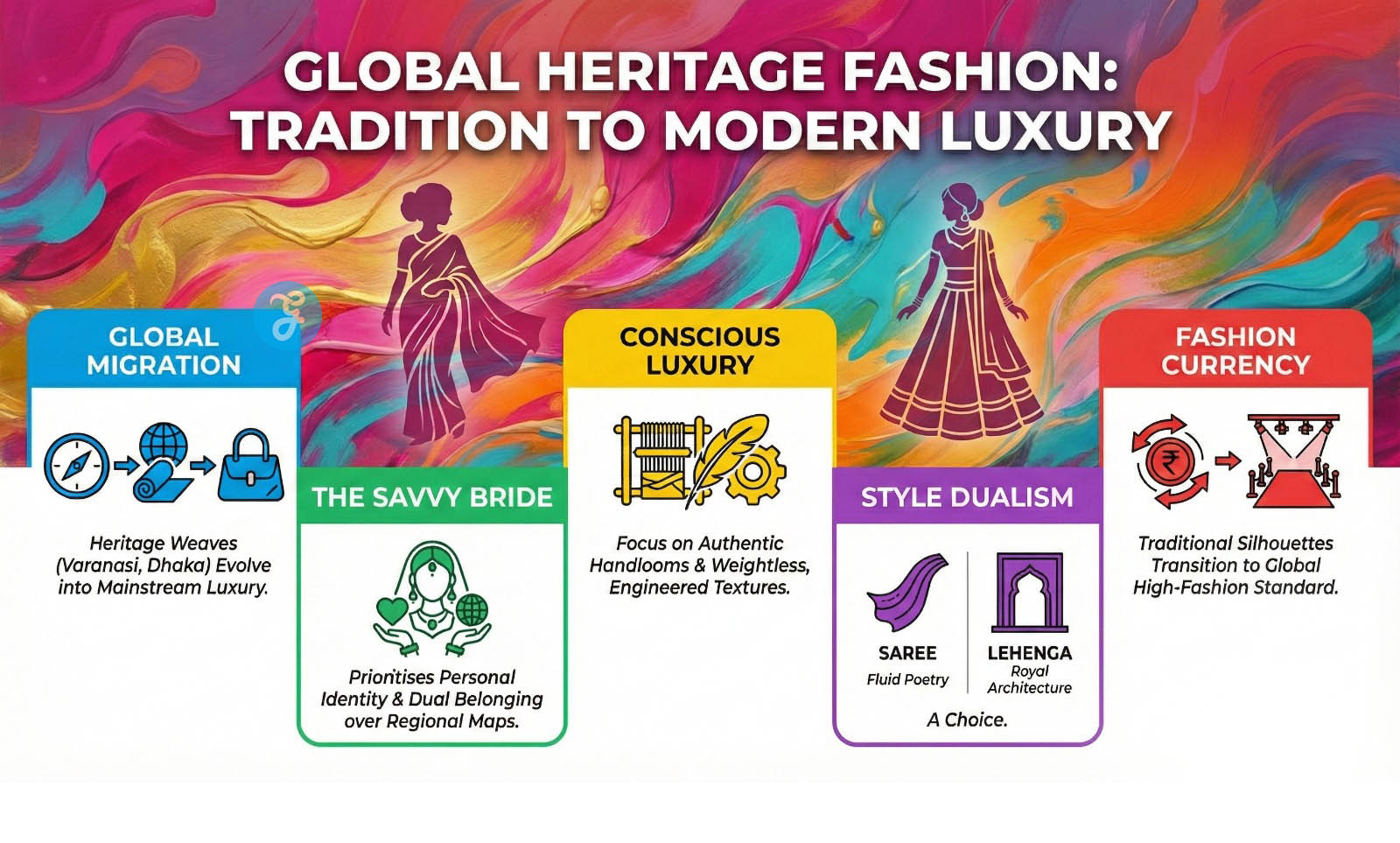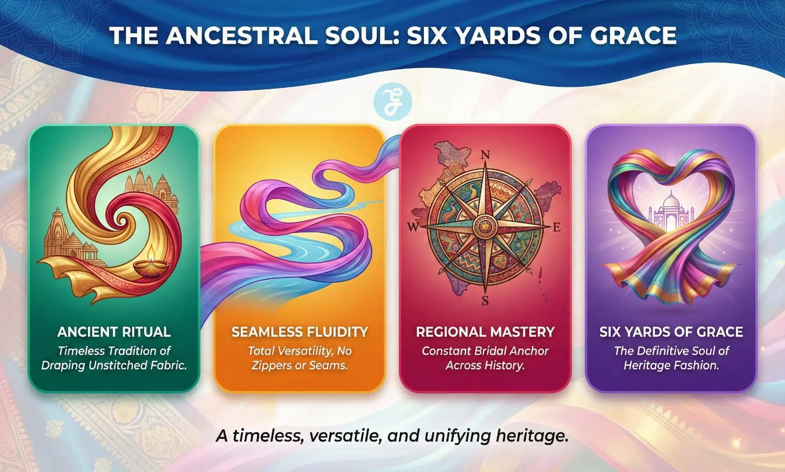 This versatility has allowed the saree to remain the definitive ancestral soul of South Asian bridal fashion for centuries. While trends in silhouettes come and go, the “six yards of grace” remains a constant, anchored by regional mastery.