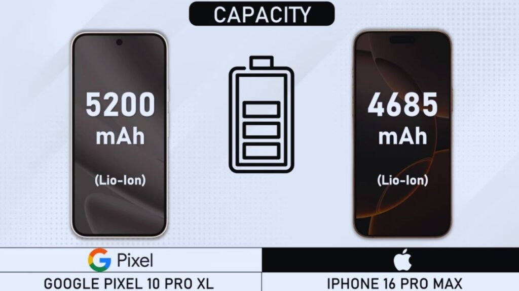 Pixel clearly offers bigger battery and faster charging, though iPhone compensates with efficient power management.