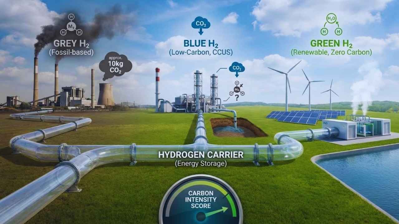 The industry uses a color wheel to describe production methods, but in 2026, regulators are moving toward “Carbon Intensity” (CI) scores rather than colors.