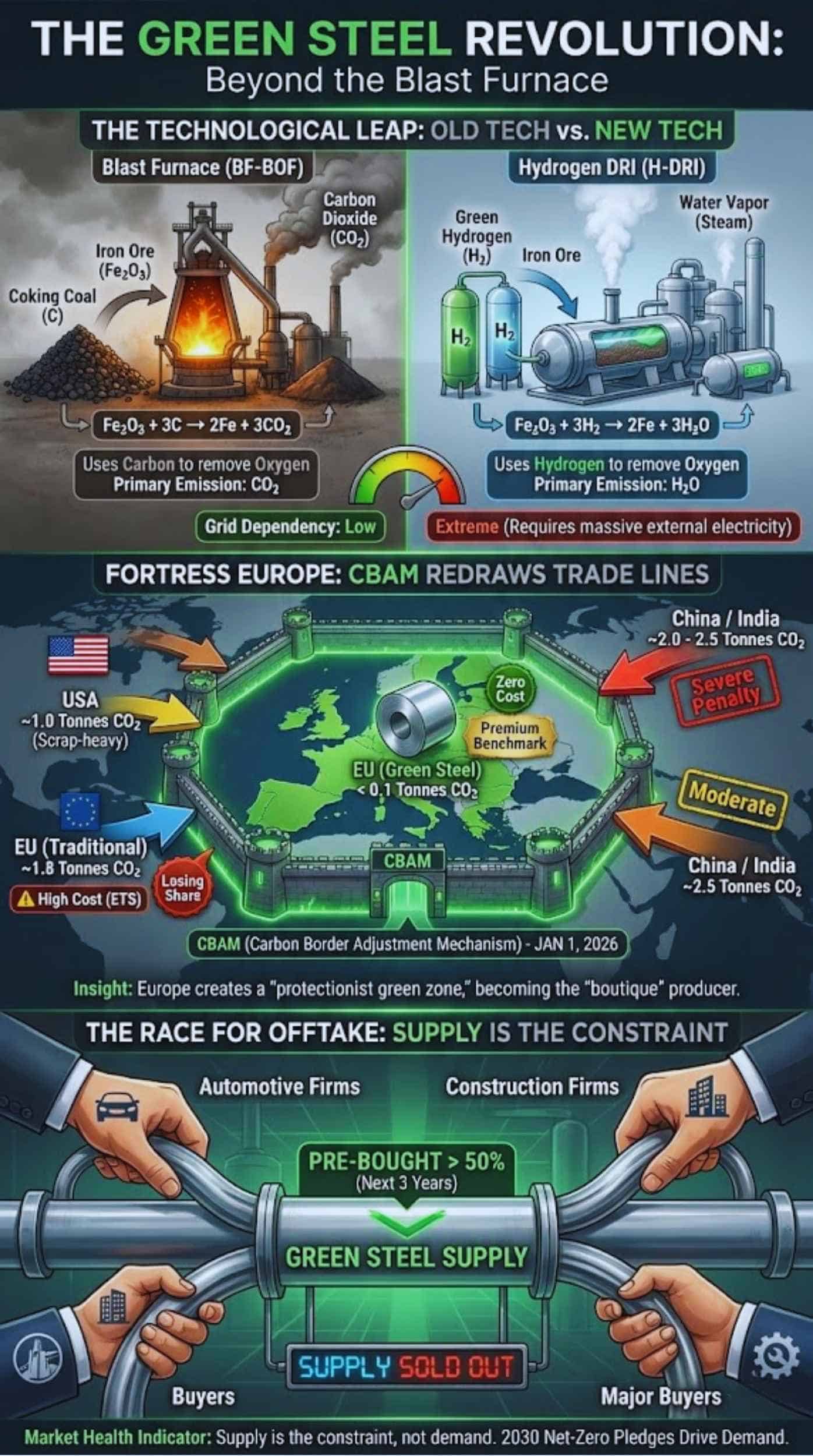 - Policy Catalyst: The timing is deliberate. As of January 1, 2026, the EU’s Carbon Border Adjustment Mechanism (CBAM) forces importers to pay for embedded carbon, eroding the price advantage of “dirty” steel from non-EU competitors.