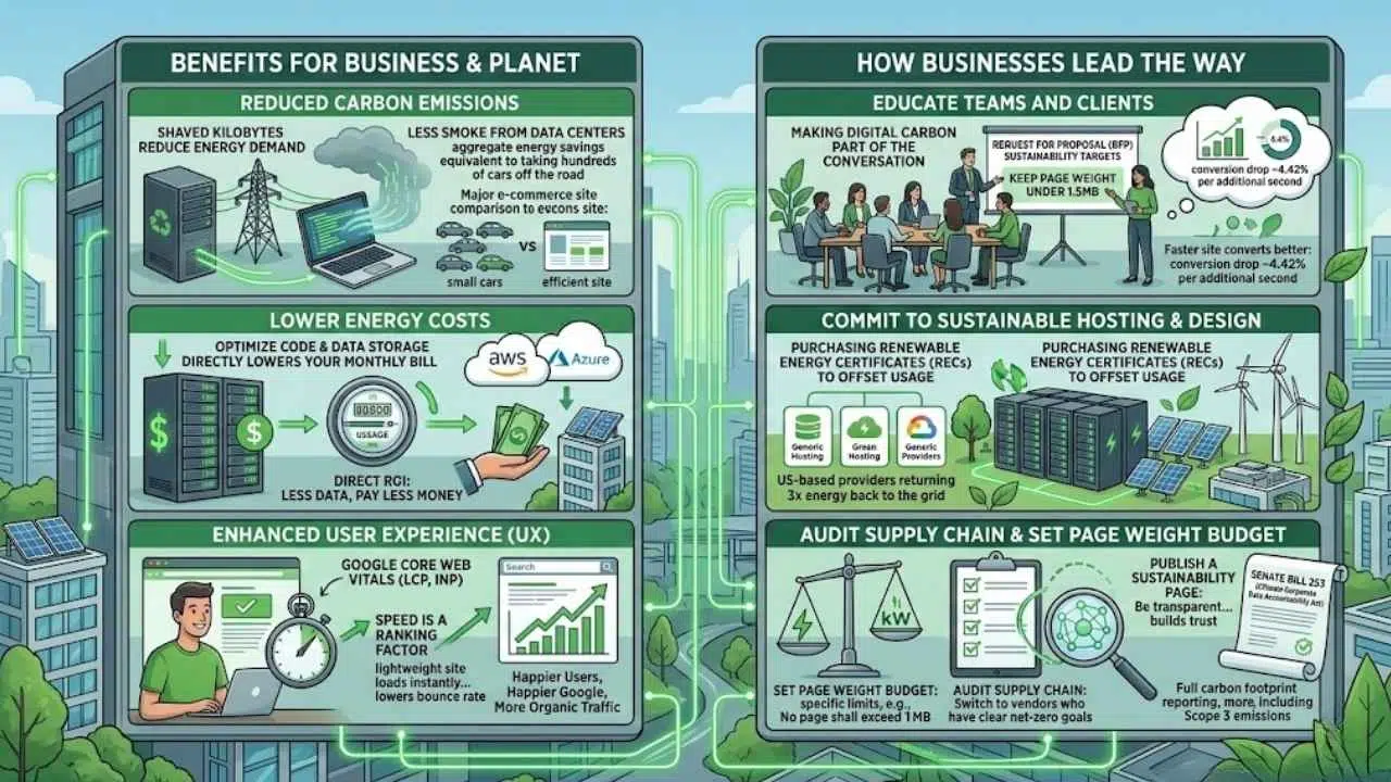 Going green is not just an act of charity for the planet; it is a smart business strategy. The same steps that lower emissions also improve your bottom line and search rankings.