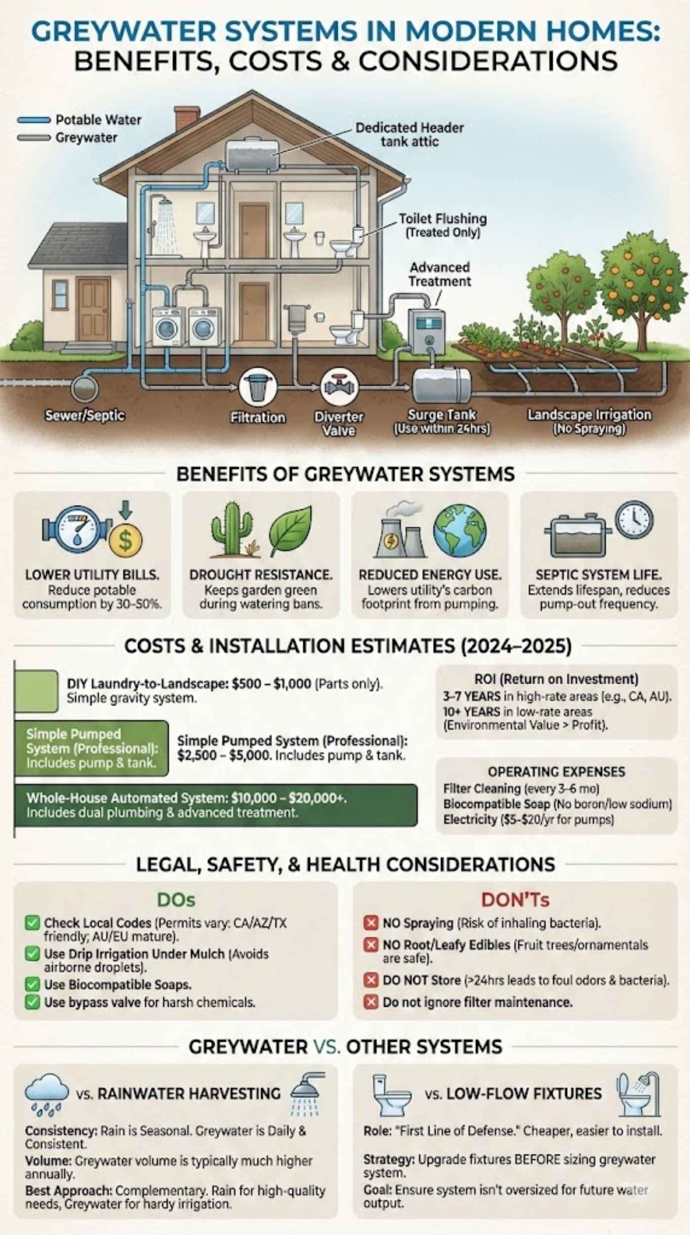 This guide explores everything you need to know about residential greywater system for homes—from how they work and what they cost to the legalities of installing one in your home.