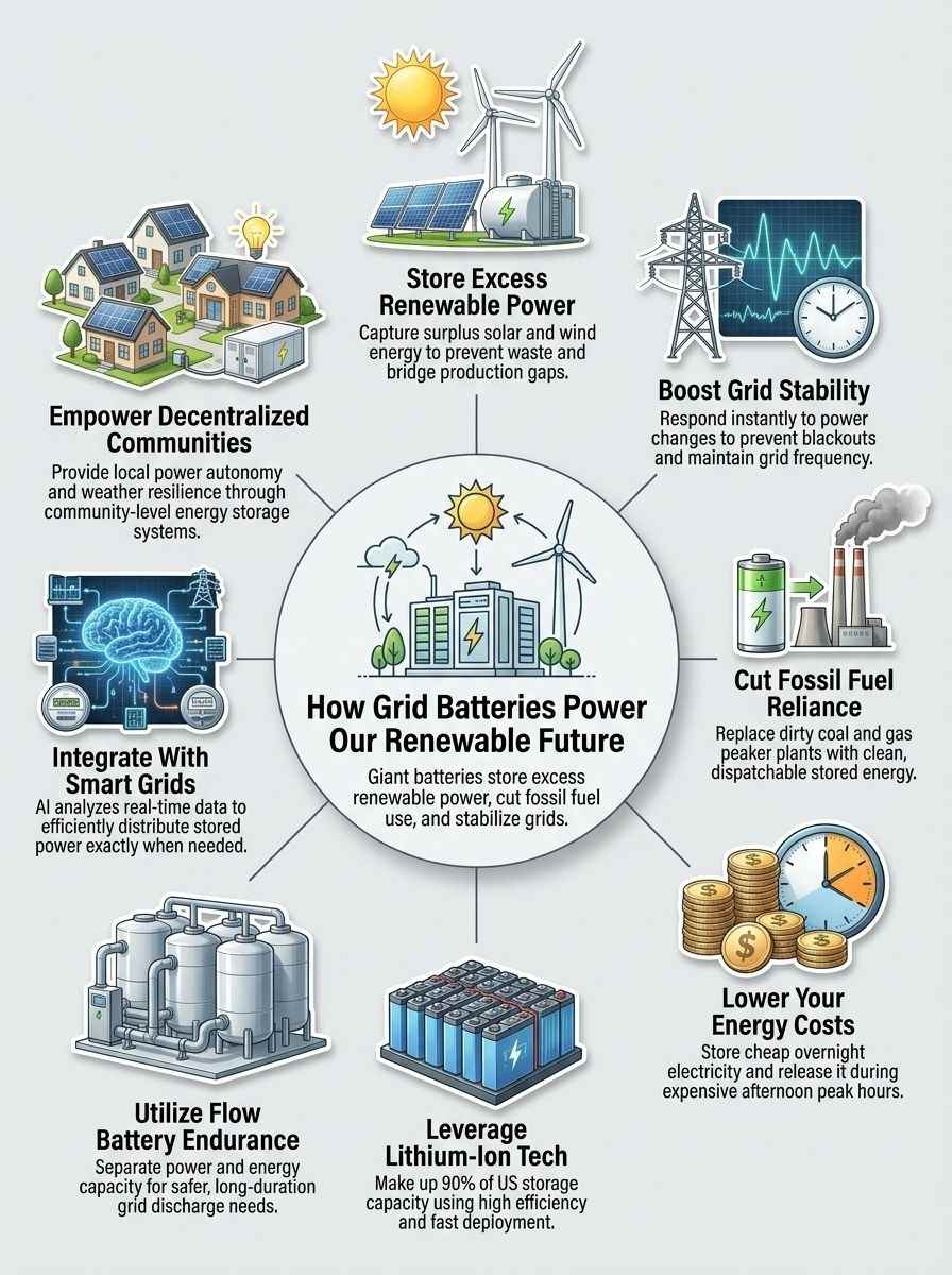 They slash reliance on coal plants, trim your electric bill by dodging peak prices, and build a tougher system against outages, making clean energy feel like a smart, everyday win.