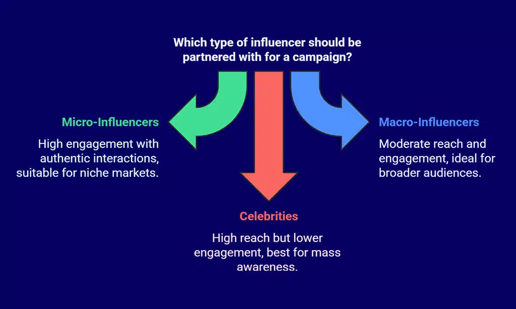 | Celebrities | 1M+ | High reach, but lower engagement |