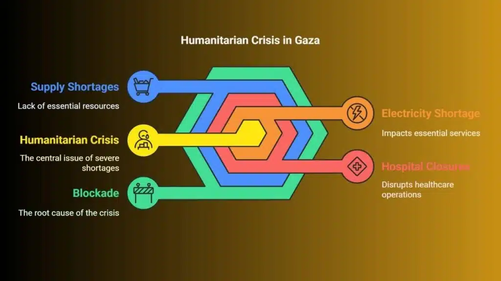 The blockade has resulted in a 90% drop in electricity availability, impacting hospital operations, water treatment, and sanitation services. The World Health Organization reported that by November 2023, 27 out of 35 hospitals in Gaza were shut down.