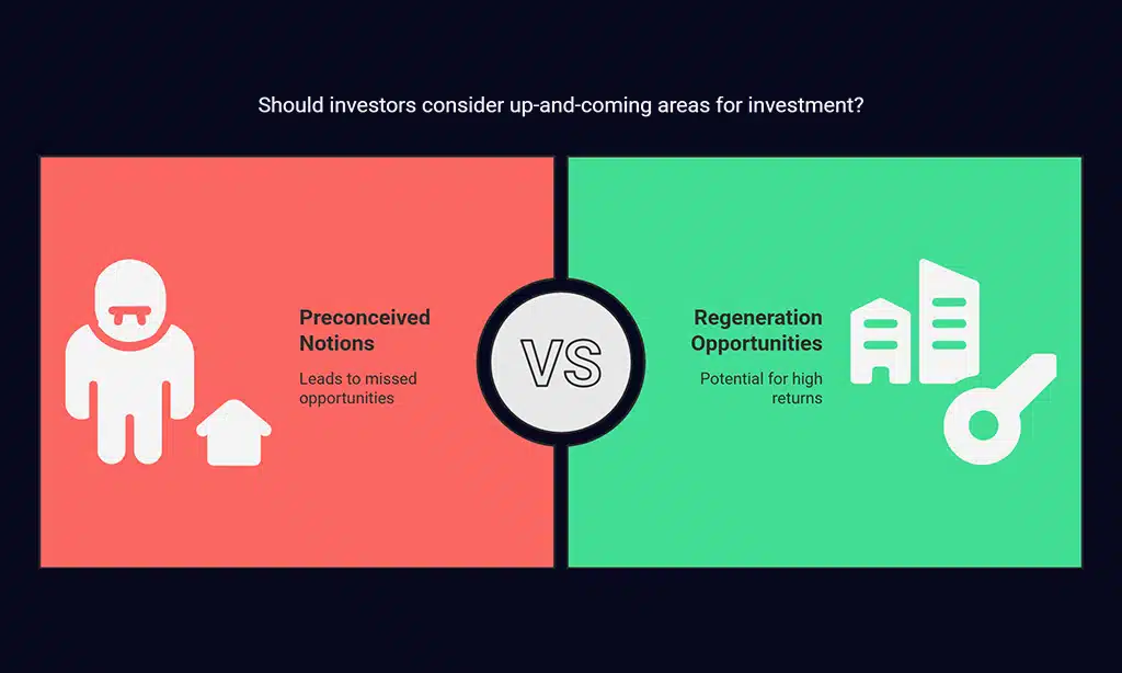 Many investors shy away from historically underdeveloped or “up-and-coming” areas due to preconceived notions about neighborhood stability. However, these areas are often in the middle of a regeneration phase, making them ripe for investment.