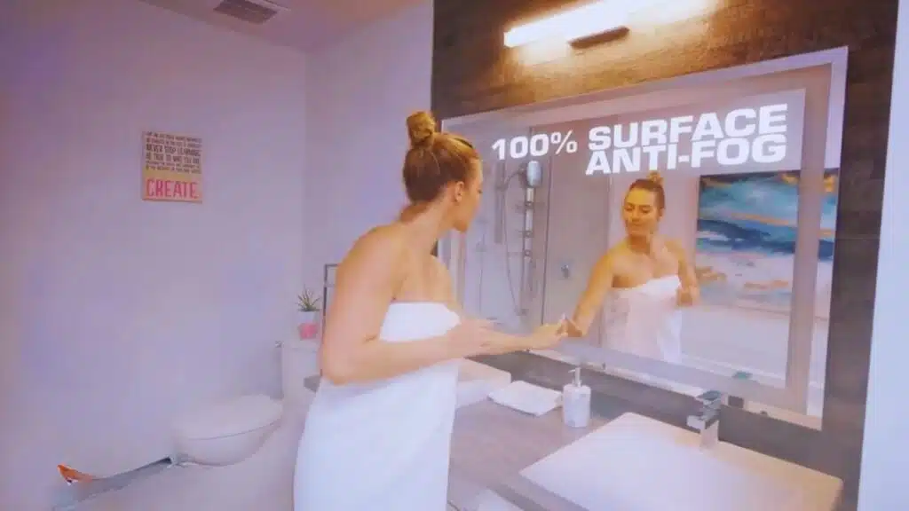 TechVision Horizon blends a mirror and a smart TV in one sleek frame. You pick custom sizes to match your bathroom design. A Full HD panel hides behind its smart glass. It links to home automation hubs and plays news, movies, or custom playlists.