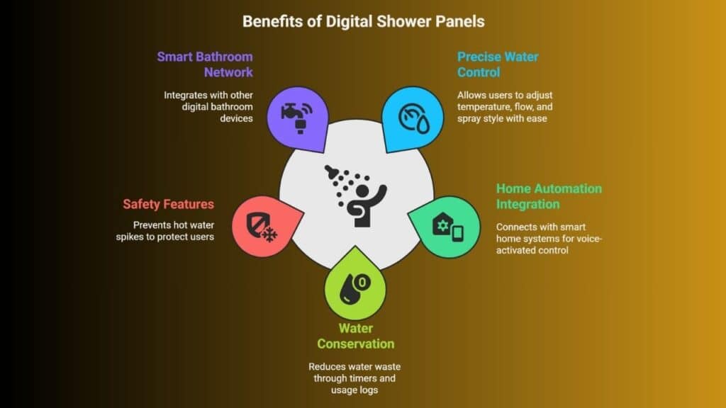 These panels let you dial in water temperature, flow, and spray style with one tap. They link to home automation hubs or voice assistants like Alexa. You just call out a preset and start the shower hands free.