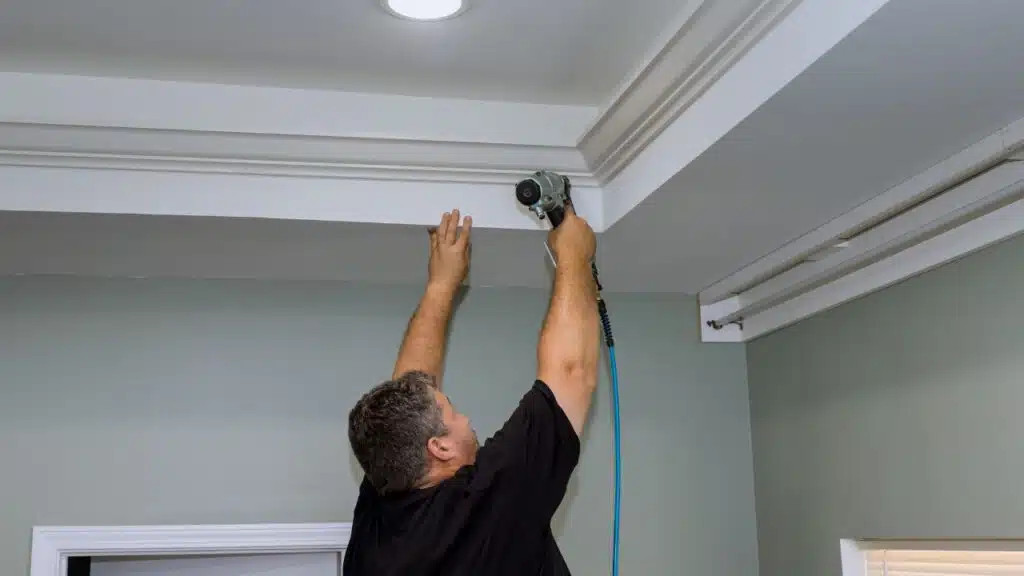 - Attach the Molding: Use a nail gun or adhesive to secure the crown molding to the wall and ceiling.