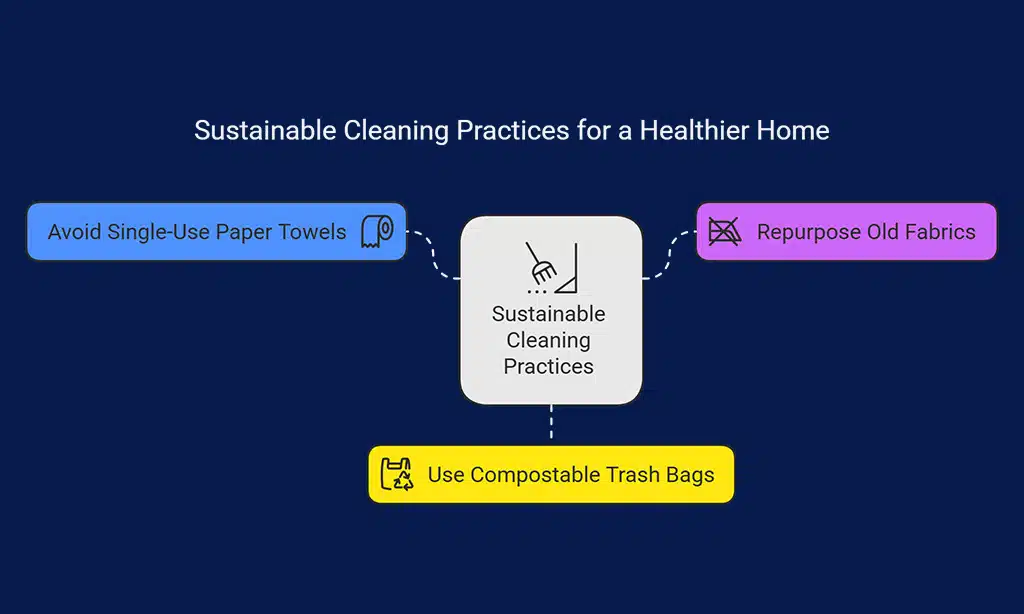 Hey there, let’s talk trash, literally! Using compostable trash bags is a super easy way to clean sustainably. They cut down on waste and keep harmful chemicals out of your home.
