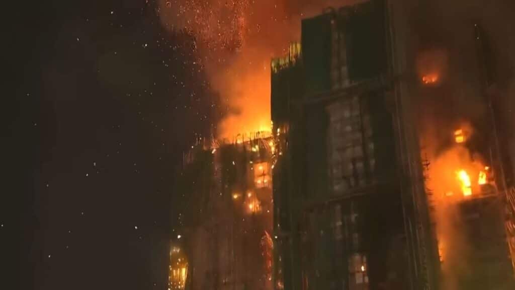 Initial tests conducted on the green mesh netting wrapped around the bamboo scaffolding revealed that seven of 20 samples failed fire-retardant standards. Investigators believe that contractors knowingly purchased thousands of rolls of cheap, substandard netting for renovations—materials that rapidly ignited and accelerated the spread of flames upward and across the building’s façade.