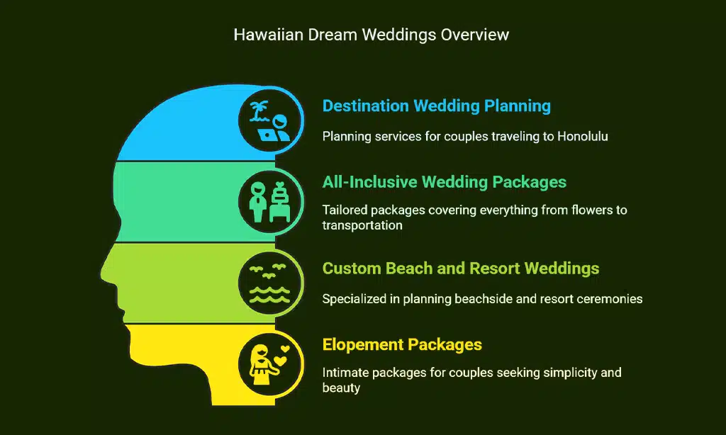 | Destination Wedding Planning | Planning services for couples traveling to Honolulu for a destination wedding. |