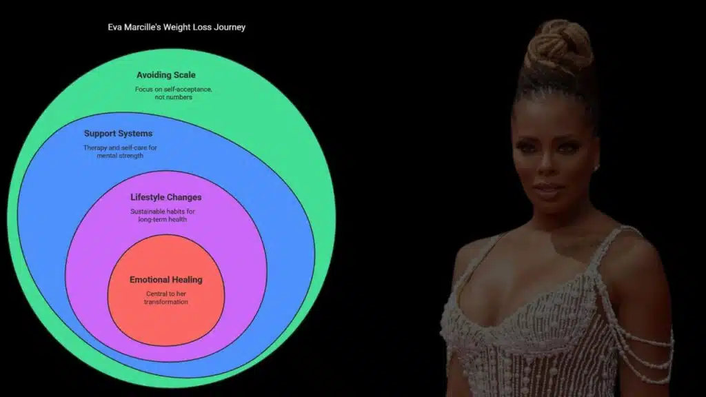 Eva’s weight loss story is more than just numbers on a scale. It’s about rediscovering herself after tough times, like her divorce from Michael Sterling. She focused on health, self-care, and mental strength to transform both inside and out.