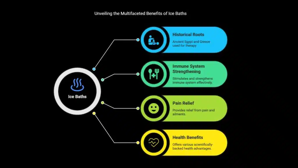 - Ice baths reduce chronic inflammation. They also improve lymphatic circulation. This helps the immune cells detoxify the body more efficiently, which enhances overall wellness.