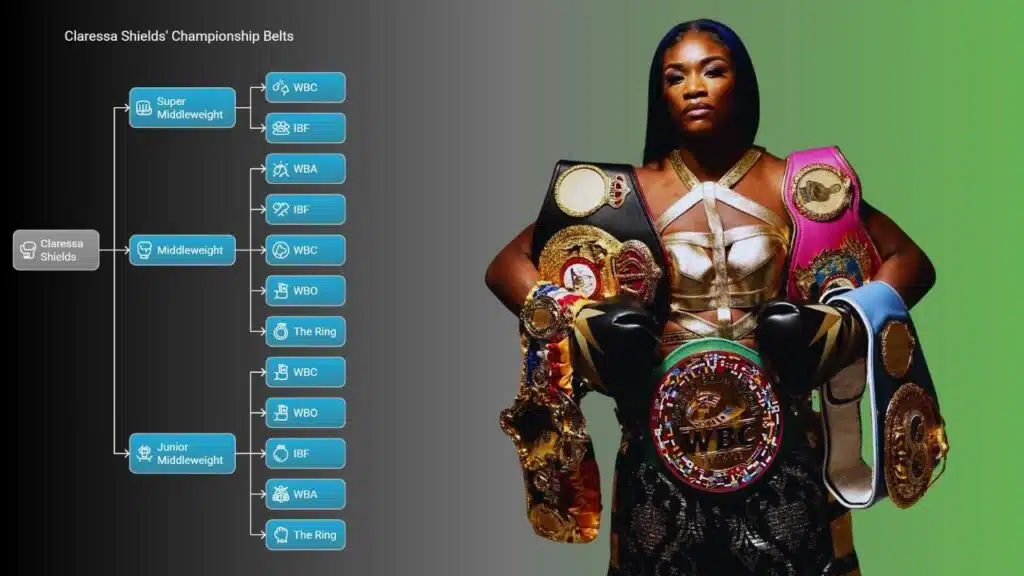 Claressa Shields is the only fighter to win every strap in three divisions. That happened in the four-belt era. This post lists each title. You will see her WBO light heavyweight belt, her WBC heavyweight title, and all the rest.