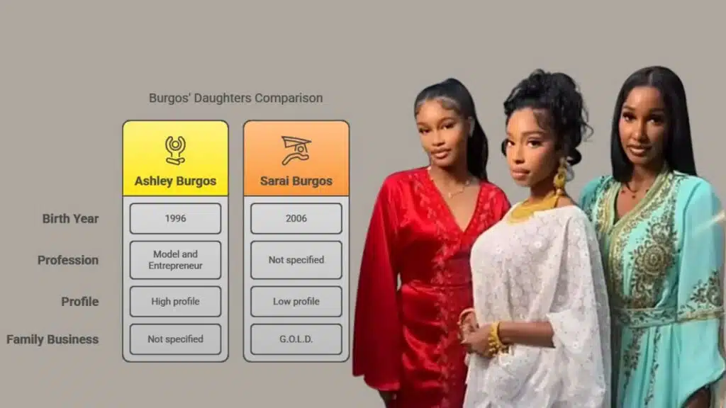 Her father, Gabriel Burgos, created the company G.O.L.D., which became very successful. Sarai shares a close bond with her mom and older sister. While not as active on social media as Bernice or Ashley, she is often seen supporting them at family events or gatherings.