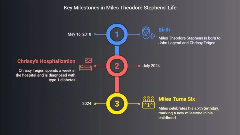 Chrissy spent a week in the hospital in July 2024 after a bad case of shigella. Tests showed type 1 diabetes. She started using a glucose monitor to track blood sugar. Teigen and Legend share reading Year One With Type-1 Diabetes with Miles each night.