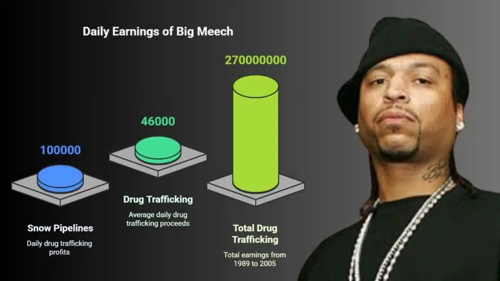 Meech pulled in roughly $100,000 every day from snow pipelines, plus extra coins from BMF Entertainment. The DEA clocked those green piles, while he and his crew raised a toast each sunrise.
