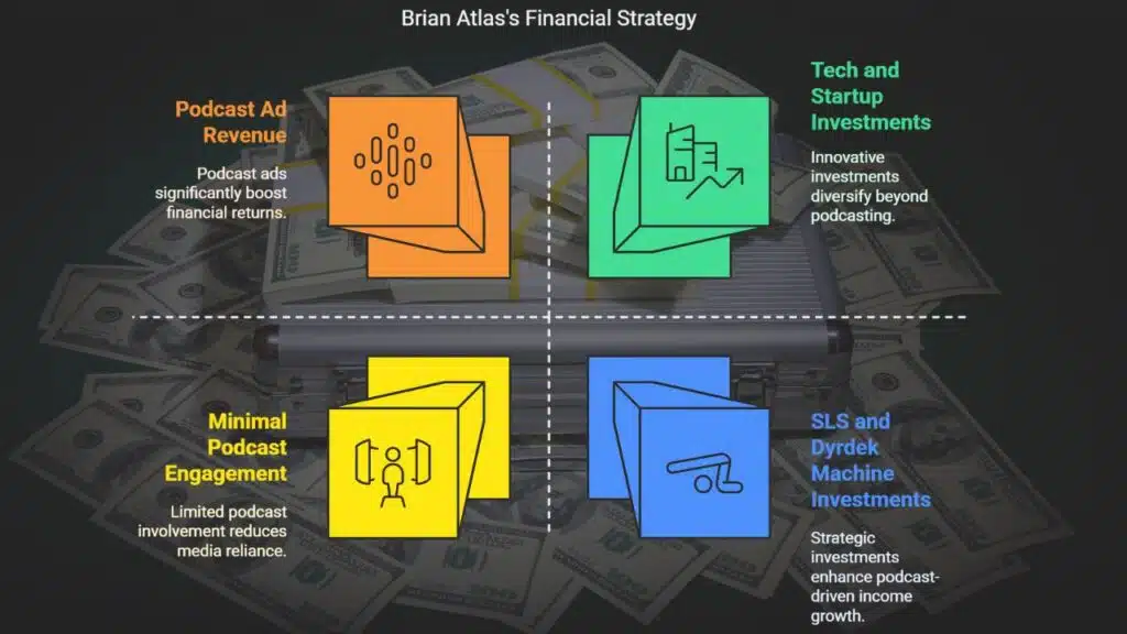 After talking about his podcast earnings, it’s key to look at Brian Atlas’s business moves. He has a big role in companies like SLS and Dyrdek Machine. This shows his skill in making decisions that grow money.