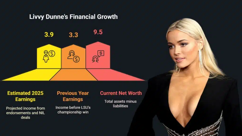 - Livvy Dunne expects $3.9 million in 2025 earnings from NCAA analytics and on3.com, lifting her net worth to about $9.5 million.