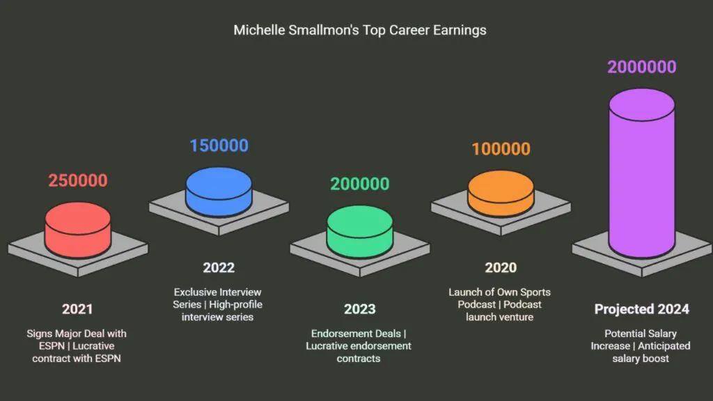 Soon, Michelle might earn even more. Reports say her income from ESPN could go up to between $1 million and $2 million by 2024. This boost would be huge for her career in sports media.