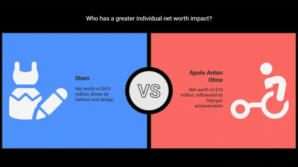 In 2025, Stam’s net worth reached $4.5 million from her work in the fashion and design industries. She leads Cavallo International Inc., making a significant impact. Her partner, Apolo Anton Ohno, an eight-time Olympic medalist, has a net worth of $10 million.