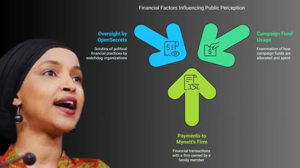 Omar’s financial life is in the news. Some ask about her campaign money use. She paid a lot to Tim Mynett’s firm for campaign help. This is noteworthy because they are married.