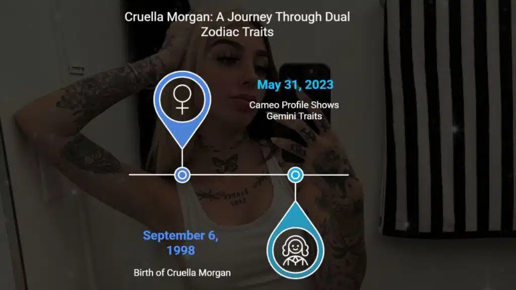 Cruella Morgan, born on September 6, 1998, is a Virgo known for being hardworking and detailed. Yet, her Cameo profile shows her birthday as May 31, suggesting Gemini traits of being social and smart.
