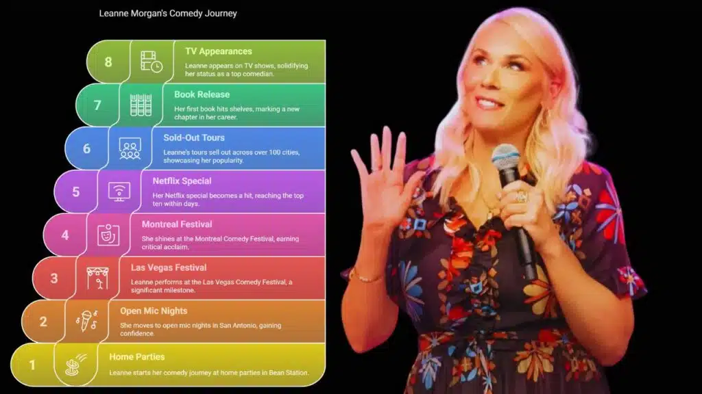 For more details on her journey from a housewife to a stand-up sensation, visit Who Is Leanne Morgan?