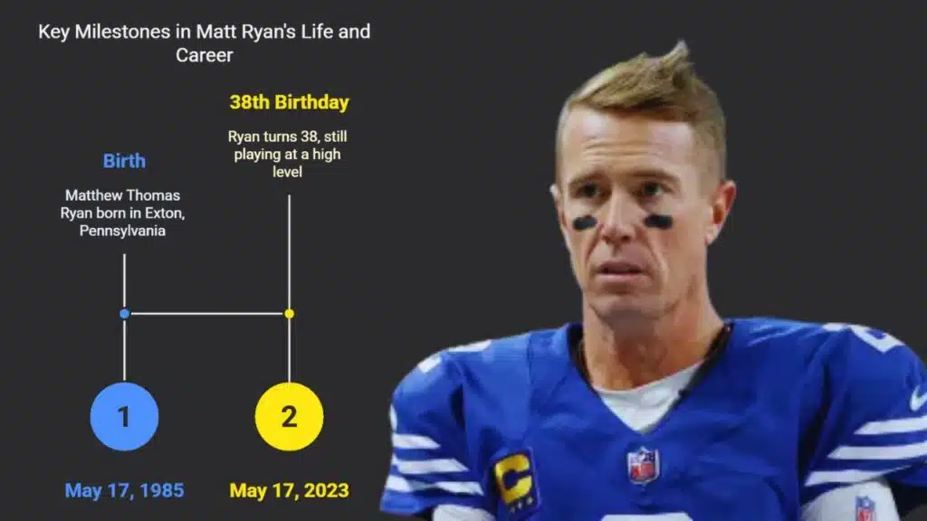 Matt Ryan, born on May 17, 1985, turned 38 in 2023. He leads the Atlanta Falcons and Indianapolis Colts as a seasoned quarterback.