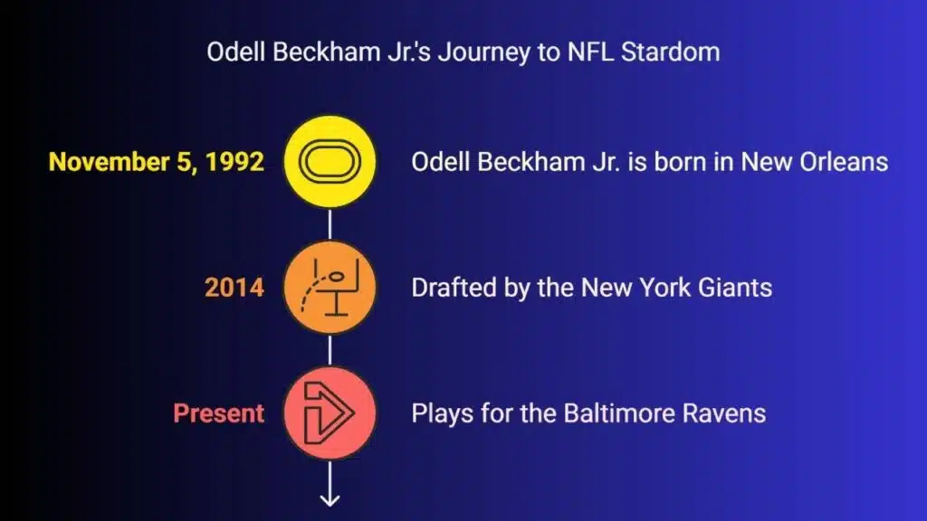Odell Beckham Jr. started his story in New Orleans, Louisiana. His age keeps fans guessing, as birthdays come and go while he scores touchdowns for teams like the Ravens. He’s moved from team to team—Giants, Browns, Rams—and even caught passes that made jaws drop across the country.