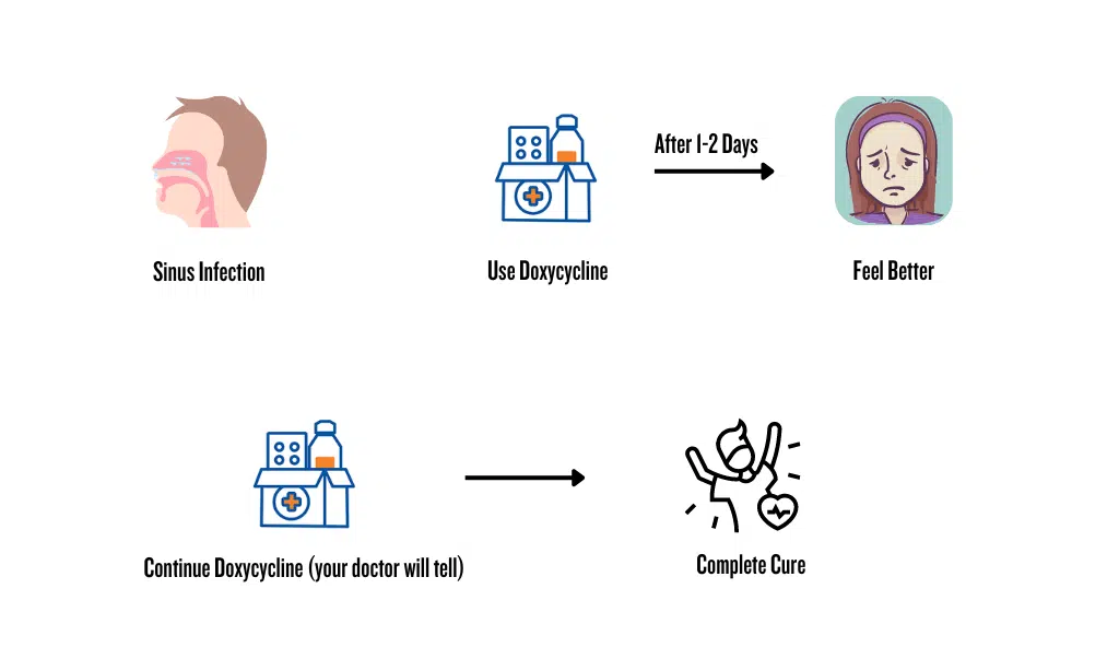 Doxycycline can kick sinus infections to the curb, usually within 1 to 2 weeks. Remember, each person reacts differently, so timing may vary. You’ve got to stick with the full prescription—even when you feel like a million bucks again—to really knock out those pesky bacteria for good.