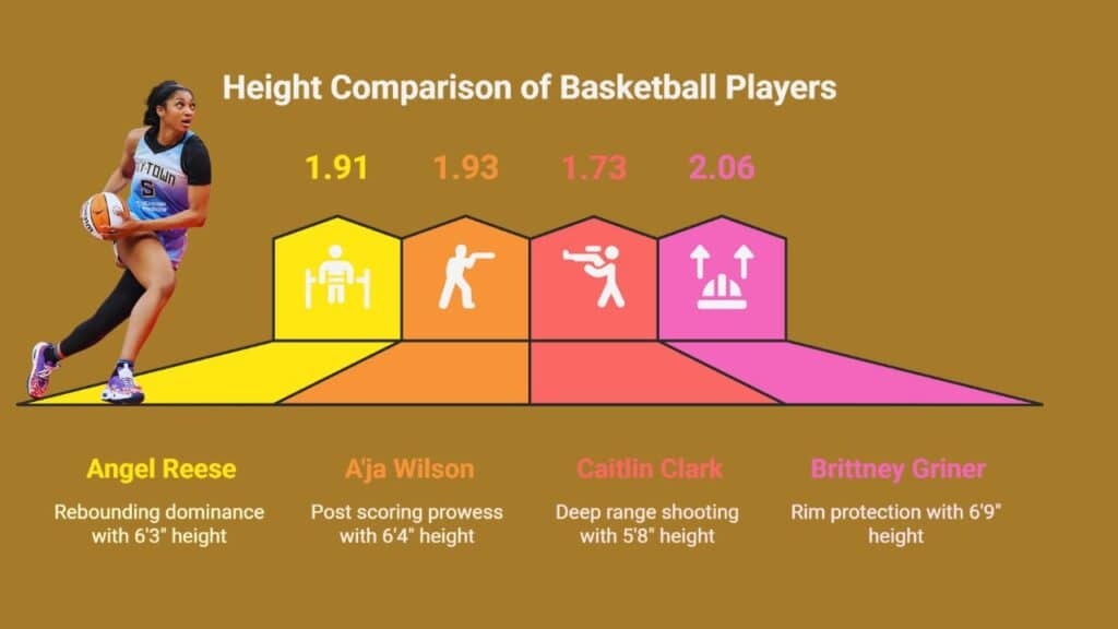 She stands 6 feet 3 inches tall, with a wingspan that acts like a yardstick in the air. We will use clear charts and side-by-side matches with stars like Caitlin Clark and A’ja Wilson.