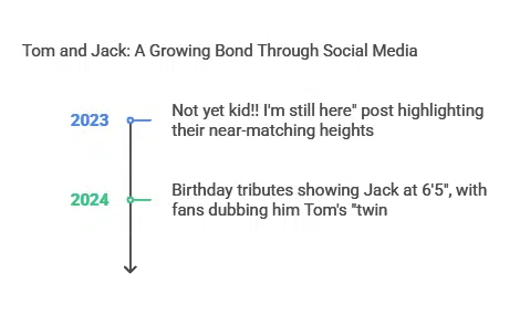 2. 2024: Birthday tributes showing Jack at 6’5″, with fans dubbing him Tom’s “twin.