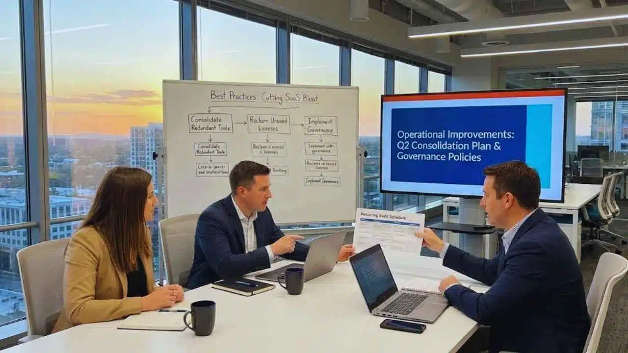 | Quarterly | License rightsizing, redundancy scan, admin review | Reclaimed seats, consolidation candidates, renewal plan |