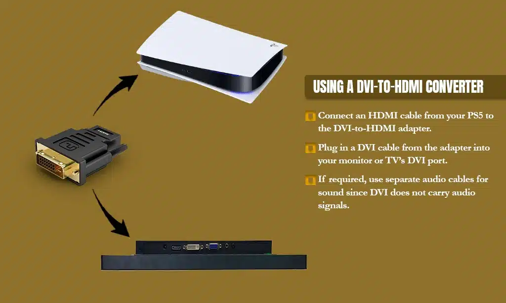 Connecting your PS5 to a TV with a DVI input is easy. A DVI-to-HDMI converter bridges the gap between old and new technology.