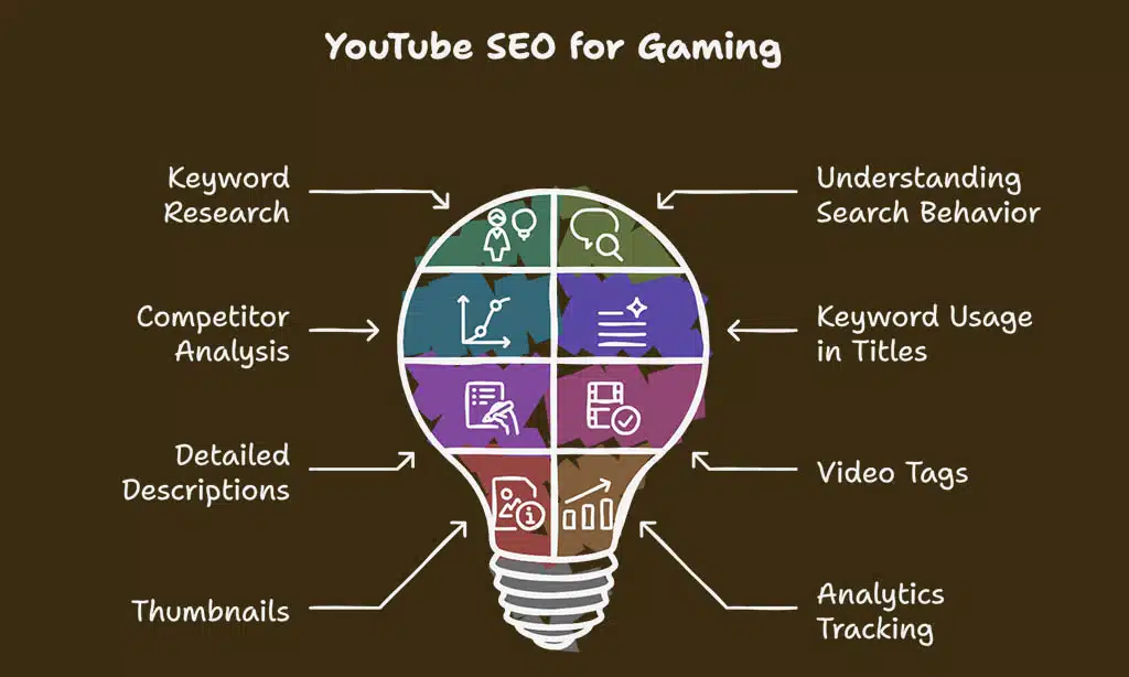 YouTube SEO and gaming keywords are vital. They help people find your videos.