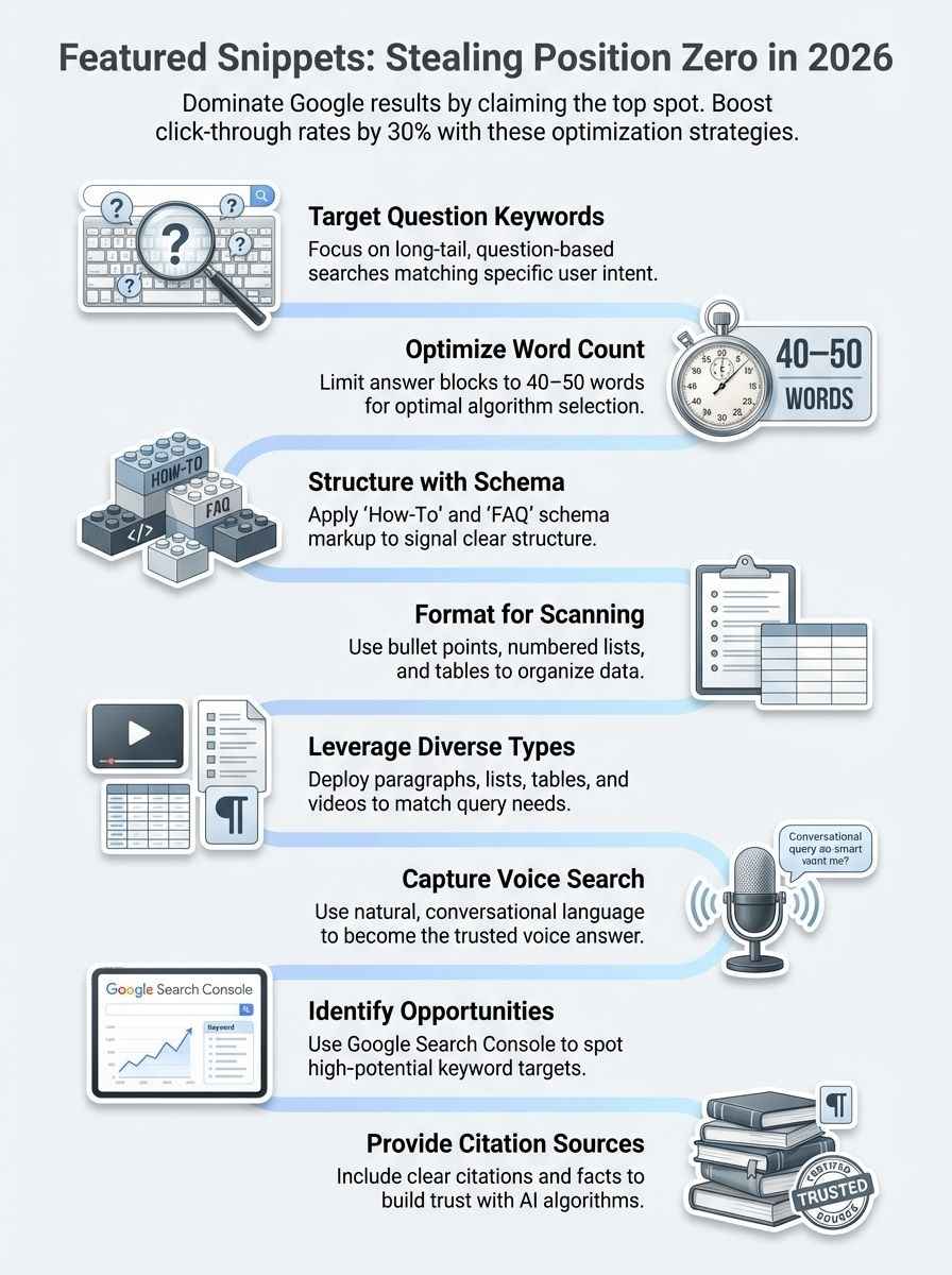 The SERPs love specificity. Instead of targeting broad terms like “SEO,” aim for long-tail, question-based keywords. Phrases like “how to fix a leaky faucet” or “best SEO strategies for small business 2026” are prime candidates for snippets.