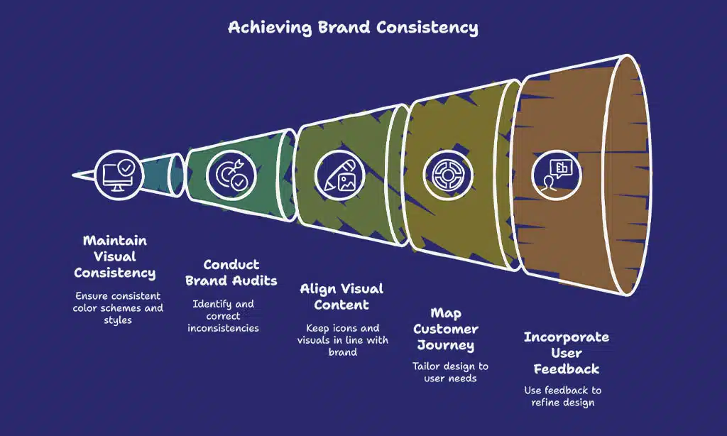 Brand audits also play a big part here. They help spot any odd bits in your website design that might confuse users. Keep your icons and visual content in line with your vibe. Mapping the customer journey, as some experts suggest, lets you match your design to user needs at every step.