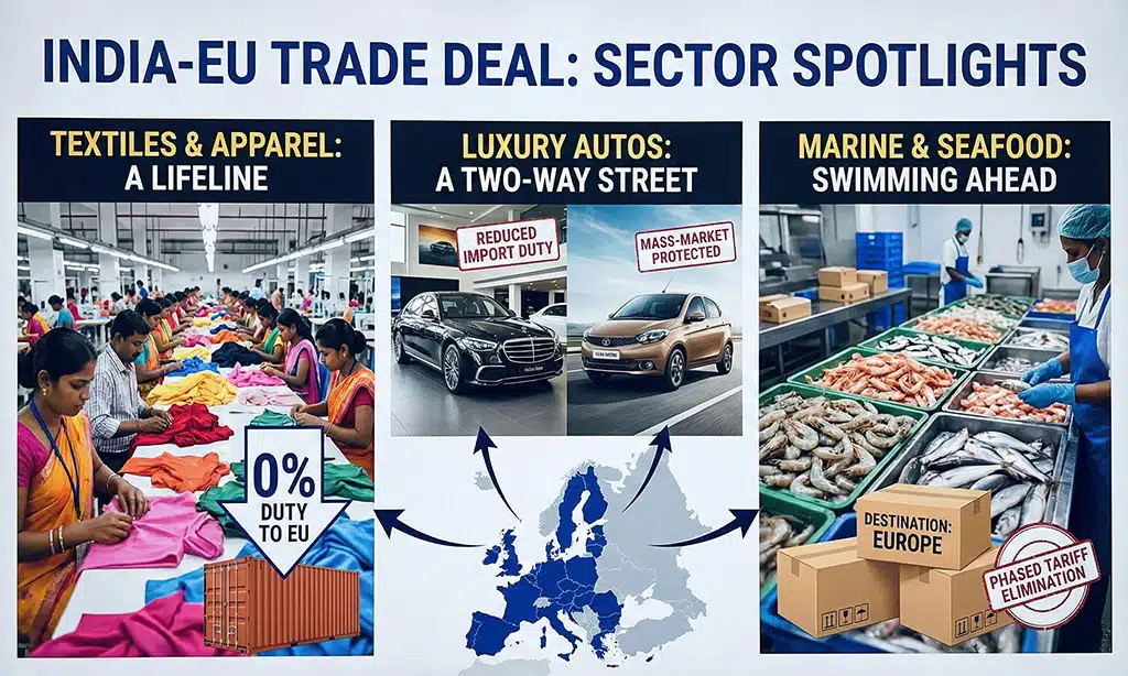 The implications of this deal ripple across India’s diverse industrial landscape, creating both profound opportunities and nuanced challenges. Under the India-EU trade deal, these shifts are especially visible across export driven sectors.