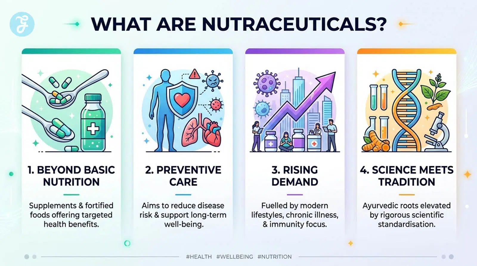 Nutraceuticals are products derived from food sources that offer additional health benefits beyond basic nutrition. They include dietary supplements, fortified foods, functional beverages, and bioactive compounds such as vitamins, minerals, probiotics, and plant extracts. Unlike conventional food, nutraceuticals are positioned at the intersection of nutrition and preventive healthcare, aiming to reduce the risk of disease and support overall well-being.
